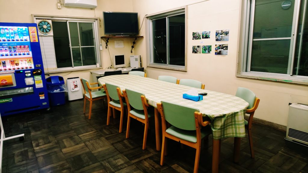 施設には、事務所、食堂、談話室、医務室、洗濯室、浴場、応接室、喫煙所などがあります。浴場は毎日お湯が張られ、湯船に浸かっていただくことが可能です。また、当施設内にテレビは2か所、エアコンは全部屋に設備されており、ご利用いただくことができます。